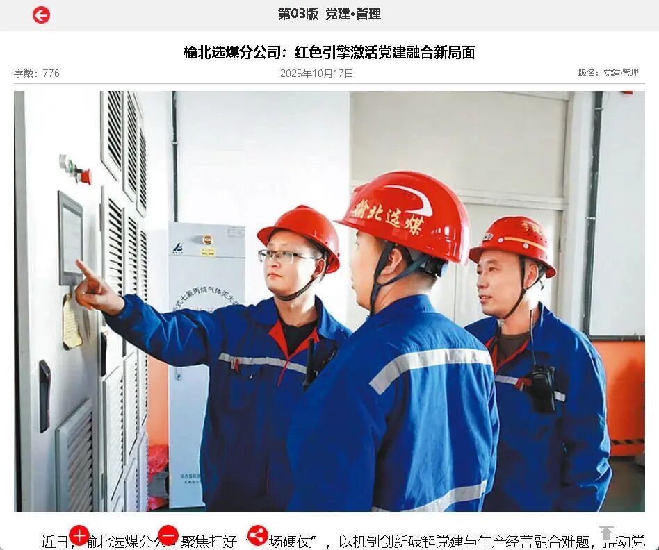 陜煤集團(tuán)報(bào)丨榆北選煤分公司:紅色引擎激活黨建融合新局面