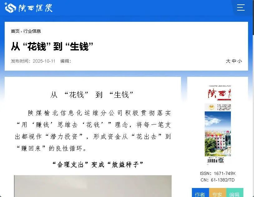 陜西煤炭丨榆北信息化運(yùn)維分公司:從“花錢”到“生錢”